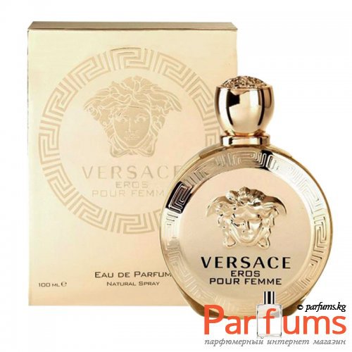 Женский аромат, посвященный богу любви Эросу, является парой к аналогичному мужскому. Округлая бутылочка, украшенная барельефом с изображением Медузы Горгоны, делает флакон символически греческим и удивительно стильным. Металлические диски и золотистые элементы дополняют вид бутылочки. Над созданием этого букета работало трио лучших парфюмеров современности Alberto Morillas, Olivier Cresp и Nathalie Lorson. Так, им удалось создать соблазнительный, невероятно чувственный, сложный аромат Versace Eros. В нем присутствует сочные ноты фруктов, деликатность цветов, бархатистая база. Это композиция, в которой нет неординарных сочетаний, однако удивительная соблазнительность сформирована классическим сплетением нот. Оттенки искристого лимона и бергамота дополняются сочным гранатом в вершине. В сердце им вторит великолепие жасмина, благоухание пиона и деликатность цветка лимона. Великолепная база Versace Eros составлена из древесных аккордов, мускуса и сандала. Эта, казалось бы классическая композиция, способна будоражить чувства, пробуждать неизведанные ранее желание.