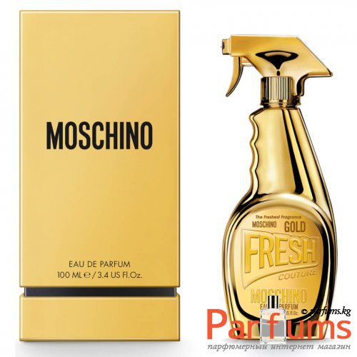 Moschino Gold Fresh Couture - это интригующий, экстравагантный аромат, который наверняка придется по вкусу смелым и решительным барышням с активной жизненной позицией. О его необыкновенности говорит само оформление - флакон, выполненный в виде бытового спрея для мойки окон или стекла, и украшенный имитацией золота. Столь необычный внешний вид полностью соответствует изумительному содержимому, которое раскрывается на горячей коже интересными сочетаниями ярких и запоминающихся нот. Открывается пирамида цитрусовыми аккордами терпкого, розового грейпфрута и искристого, спелого, сочного мандарина. Фруктовые мотивы зеленой груши и экзотического, белого персика составляют тропический коктейль вместе со сладким манго из заморских стран. Душистый лист ревеня великолепно сочетается с душистым, белоснежным жасмином. Сердце композиции представлено цветочным букетом, который состоит из благоухающего ландыша и восхитительной, нежной орхидеи. Горьковато-смолистые пачули разбавляются свежей нотой акигалавуда в базе парфюмерной композиции. Древесные мотивы стройного сандала сочетаются с соблазнительны мускусом и сладкой ванилью, создавая прекрасное послевкусие. Аромат Moschino Gold Fresh Couture замечательно звучит как в дневное, так и в вечернее время суток.